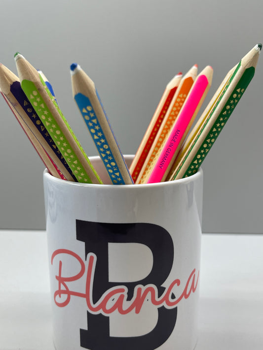 Aquí encontrarás artículos relacionados con la escuela o para tu escritorio, como por ejemplo un porta lápices de cerámica, libretas con el nombre, esterilla estampada para el ratón....