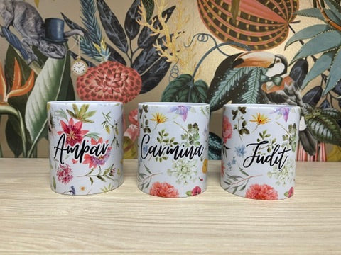 Taza cerámica flores personalizada