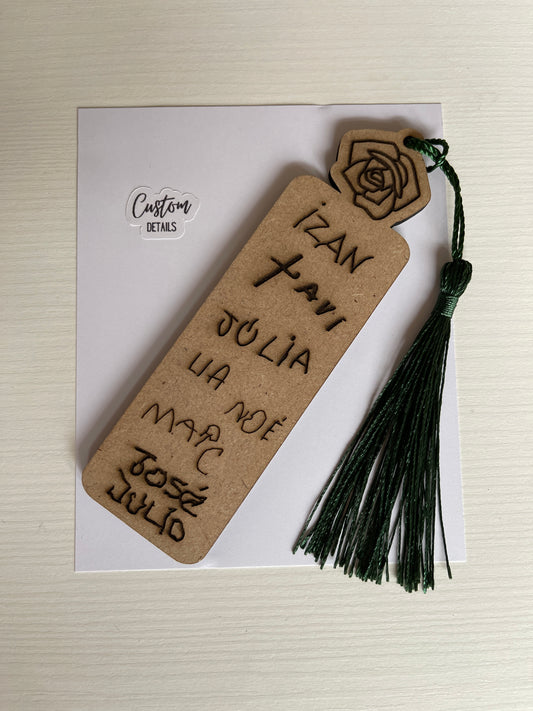 Punto de libro con nombres grabados